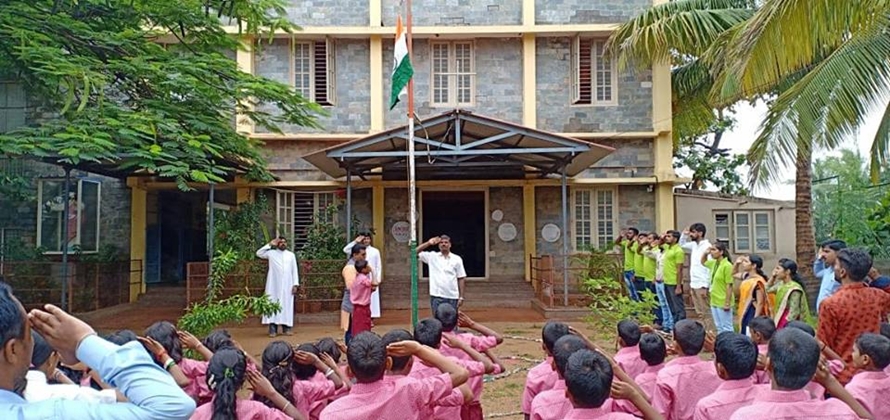 together in the ground for the flag hoisting. Fr Sony, the chief guest of the day
