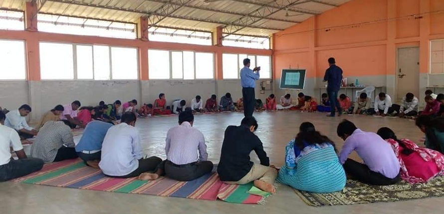 The second day training by Fr. Prasad, The Director of Don Bosco, Sumanahalli took training for our staff and Tuition teachers from Jagalur and Harapanahalli. In the training Fr. Prasad explained us that many times we think that, we know everything because we have worked so many years in the social field so we think that we know everything but practically when it comes we fail to solve it. He also explained how a leader should be, how a leader should have goal, how to plan to reach the goal, how a leader should involve other team members and how a good leader reaches his goal taking his team with him. Through various activities he made the whole team understand important a team work is and without specific contribution from each member a group cannot function properly.