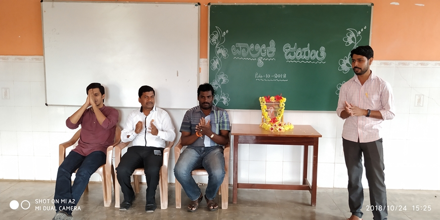DBCLM under the project of Open Shelter organized a short programme to celebrate Valmiki Jayanthi on October 24, 2018. Fr Jose Joseph, Administrator of the centre, was the chief guest of the program. Mr. Shrinivas, CS Project Social Activist and Mr. Dinesh KN, Open Shelter Social Worker, were also present on the stage during the program.
